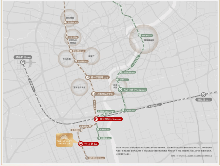 另外,通过15号线站到景洪路站(原华泾西站),可换乘机场联络线(在建,年底通车),向西2站到虹桥,向东2站到张江;同样换乘19号线站到前滩.